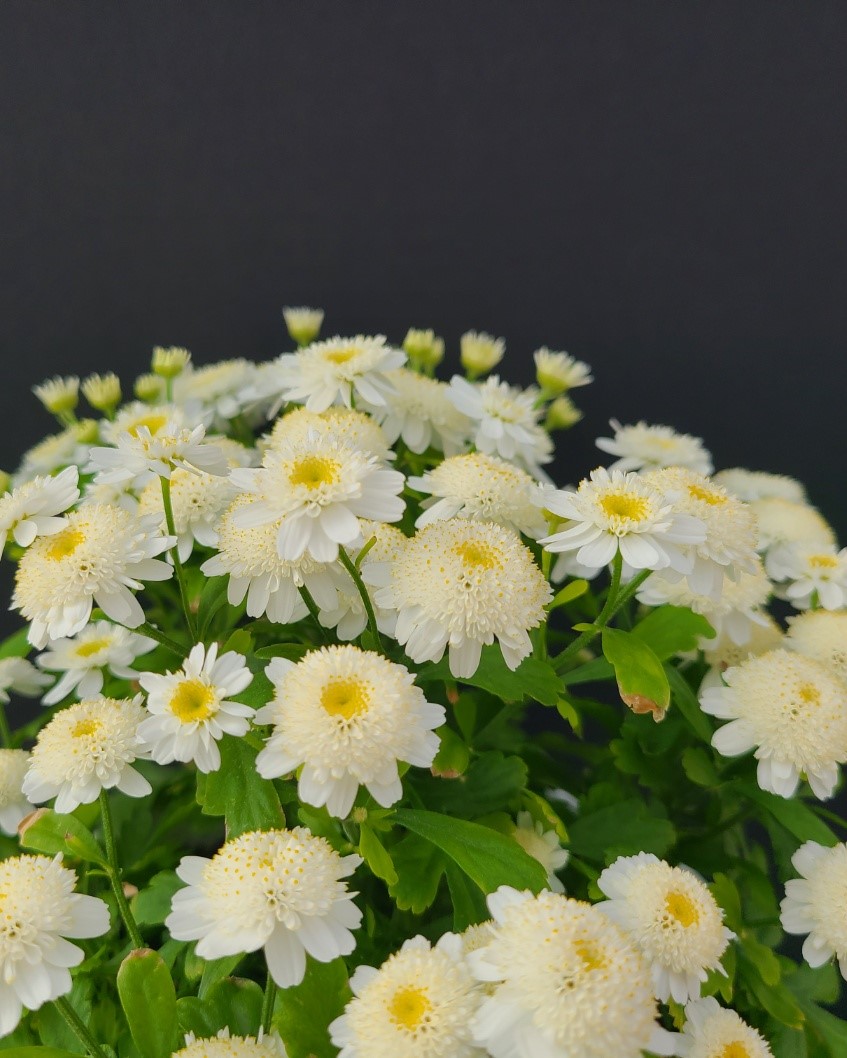 Tanacetum parthenium 'Snowman'